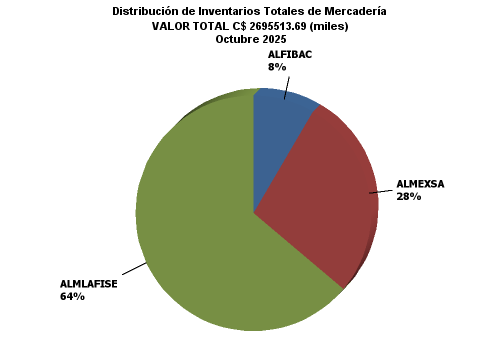 | | | | ALMLAFISE | ALMEXSA | ALFIBAC | TOTALES | | | | | | | | MERCANCIAS ALMACENADAS | 1,721,935.66 | 745,693.68 | 227,884.35 | 2,695,513.69 | | Bodegas propias | 858,707.60 | 0.00 | 0.00 | 858,707.60 | | Mercaderías en Depósito Financiero | 60,570.97 | 0.00 | 0.00 | 60,570.97 | | Mercaderías en Depósito Fiscal | 0.00 | 0.00 | 0.00 | 0.00 | | Mercaderías en Depósito Simple | 798,136.63 | 0.00 | 0.00 | 798,136.63 | | Bodegas Arrendadas Directas | 710,966.65 | 11,628.40 | 0.00 | 722,595.06 | | Mercaderías en Depósito Financiero | 18,736.30 | 1,352.10 | 0.00 | 20,088.40 | | Mercaderías en Depósito Fiscal | 679,985.11 | 0.00 | 0.00 | 679,985.11 | | Mercaderías en Depósito Simple | 12,245.24 | 10,276.30 | 0.00 | 22,521.54 | | Bodegas Arrendadas | 3,432.82 | 734,065.28 | 227,884.35 | 965,382.45 | | Mercaderías en Depósito Financiero | 0.00 | 668,381.52 | 125,550.07 | 793,931.60 | | Mercaderías en Depósito Fiscal | 3,432.82 | 0.00 | 0.00 | 3,432.82 | | Mercaderías en Depósito Corriente | 0.00 | 65,683.75 | 102,334.27 | 168,018.03 | | Bodegas Habilitadas | 148,828.58 | 0.00 | 0.00 | 148,828.58 | | Mercaderías en Depósito Financiero | 145,258.82 | 0.00 | 0.00 | 145,258.82 | | Mercaderías en Depósito Corriente | 3,569.76 | 0.00 | 0.00 | 3,569.76 | | SEGUROS | 5,003,947.75 | 2,475,074.67 | 1,034,577.38 | 8,513,599.79 | | Seguros contratados | 5,003,947.75 | 2,475,074.67 | 1,034,577.38 | 8,513,599.79 | | De mercadería | 4,987,057.68 | 2,364,098.56 | 1,016,324.32 | 8,367,480.57 | | De bienes inmuebles y muebles propios | 4,558.64 | 88,718.26 | 0.00 | 93,276.90 | | De bienes inmuebles y muebles ajenos | 0.00 | 0.00 | 0.00 | 0.00 | | Otros seguros | 12,331.42 | 22,257.84 | 18,253.06 | 52,842.32 | | FIANZAS | 5,493.64 | 0.00 | 0.00 | 5,493.64 | | Fianzas contratadas | 5,493.64 | 0.00 | 0.00 | 5,493.64 | | A favor de la Dirección General de Aduanas | 5,493.64 | 0.00 | 0.00 | 5,493.64 | | De fidelidad de funcionarios y empleados | 0.00 | 0.00 | 0.00 | 0.00 | | Otras fianzas | 0.00 | 0.00 | 0.00 | 0.00 |